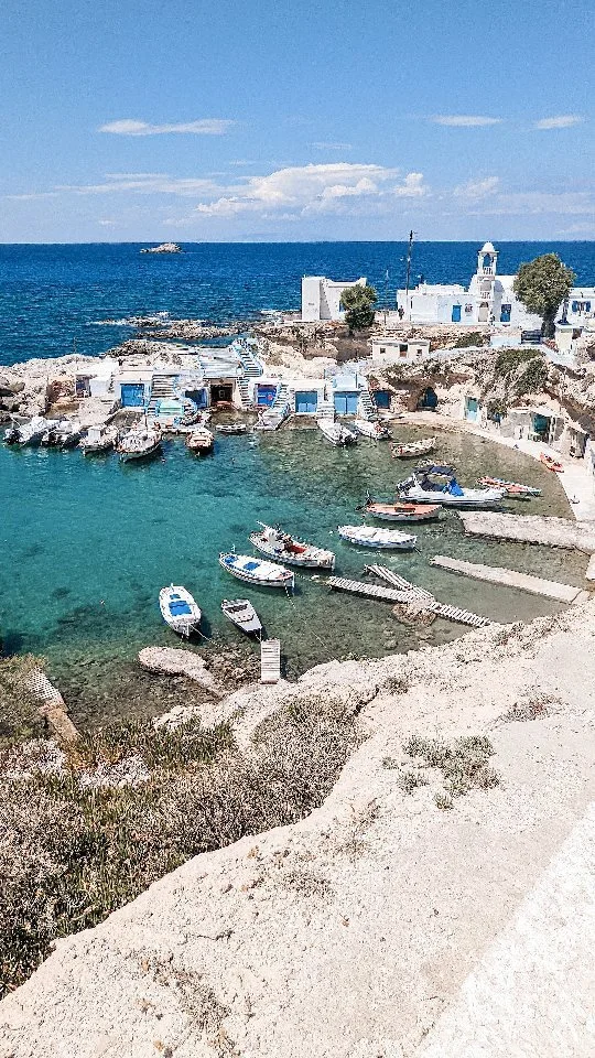 You MUST not miss out on the boat trip to Kleftiko beach. It is out of this world beautiful. There are a number of different excursions you can book from the port, many of the boats have signs outside showing their offers. We opted for a cheaper trip without lunch as we wanted to find our own places for to eat and didn’t want to be out on the boat the entire day (we only had a few days on the island), but most do include lunch and drinks on the boat. I would rent out a quad bike or a car and get discovering the whole island, there is so much to be seen. Ask locals for tips and they’ll tell you the best spots to go. Watch sunset from Klima beach where all the little fisherman boathouses are different colours. Don’t miss Sarakiniko beach.